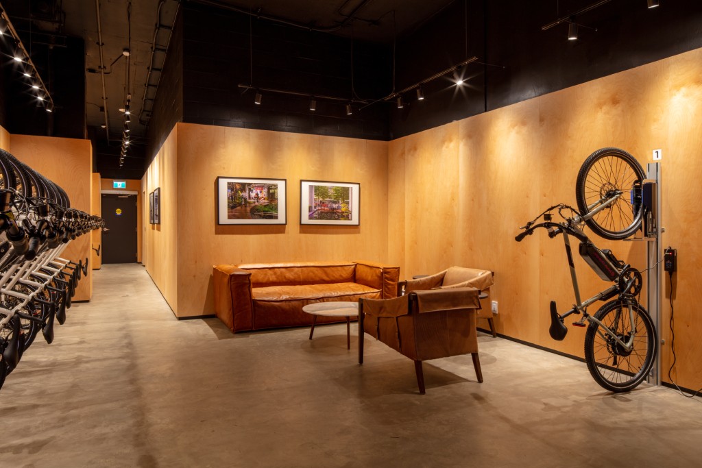 The Zephyr Cycle Club is an in-building bike sharing program which will provide a fleet of 20 custom designed electric bikes to resident members. The goal of the cycle club is to provide an electrified alternative to owning a car. The Zephyr Cycle Club will provide a mobility solution that not only responds to the climate emergency and effectively removes cars from the road but it also provides a sense of community and wellness that is integral to every Westbank Living project.